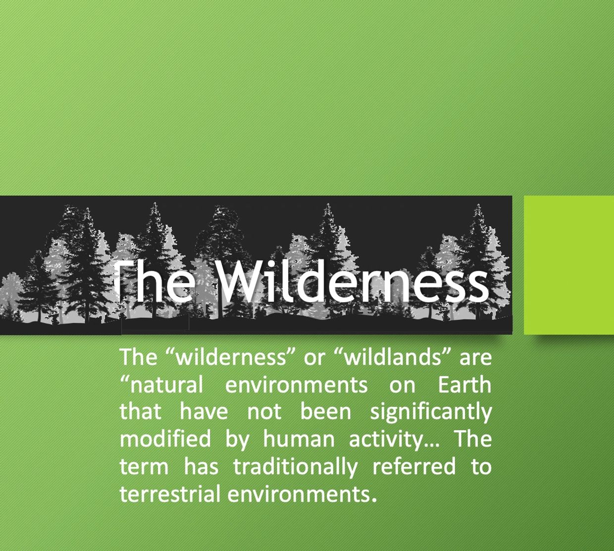 Wikipedia identifies the “wilderness” or “wildlands” as “natural environments on Earth that have not been significantly modified by human activity… The term has traditionally referred to terrestrial environments.”(https://en.wikipedia.org/wiki/Wilderness)
